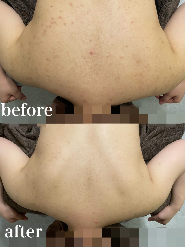 背中ニキビや赤み、ざらつきに長年お悩みだったお客様の症例です★